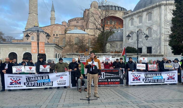 Filistin’e destek olmak ve İsrail’e petrol sağlayan şirketleri protesto etmek için Ayasofya Meydanı’nda eylem düzenlendi. Sultanahmet’ten başlayan yürüyüş Ayasofya önünde son buldu.