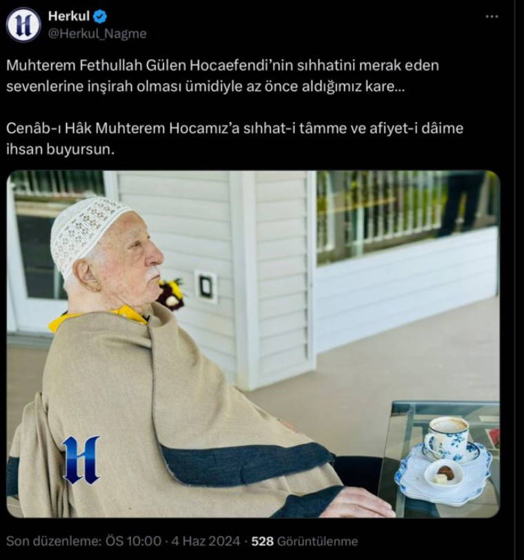 Öte yandan FETÖ tarafından yönetilen Herkul isimli sosyal medya hesabından, Gülen'in son halini gösterdiği iddiasıyla, daha önce görülmemiş bir fotoğrafı paylaşıldı.