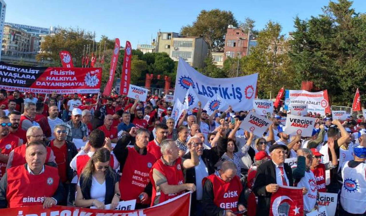 DİSK'in düzenlediği miting için Marmaray’ın Başak durağı önünde bir araya gelen binlerce işçi, kortejler halinde miting alanına yürüdü. Çok sayıda siyasi parti ve demokratik kitle örgütünün katıldığı mitingde, üniversite öğrencilerinin de ilgisi yoğundu. Sık sık, “İnadına sendika inadına DİSK”, “Gelirde adalet, vergide adalet”, “Filistin halkı yalnız değildir” “İşçilerin birliği sermayeyi yenecek”, “Direne direne kazanacağız”, sloganlarını atan kitle, miting alanını doldurdu.