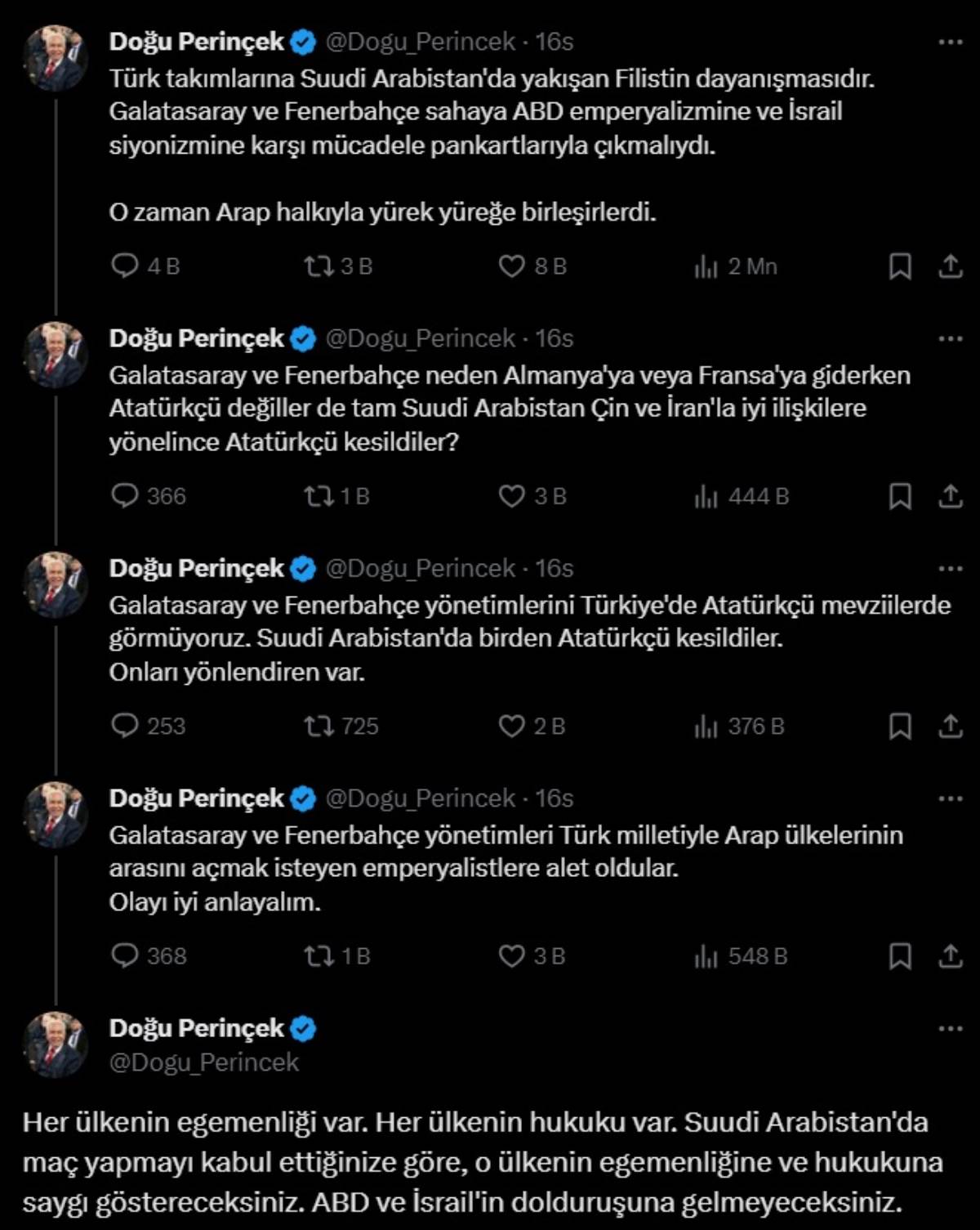 yaptığı ve yoğun tepki alan ilginç paylaşımında, “Türk takımlarına Suudi