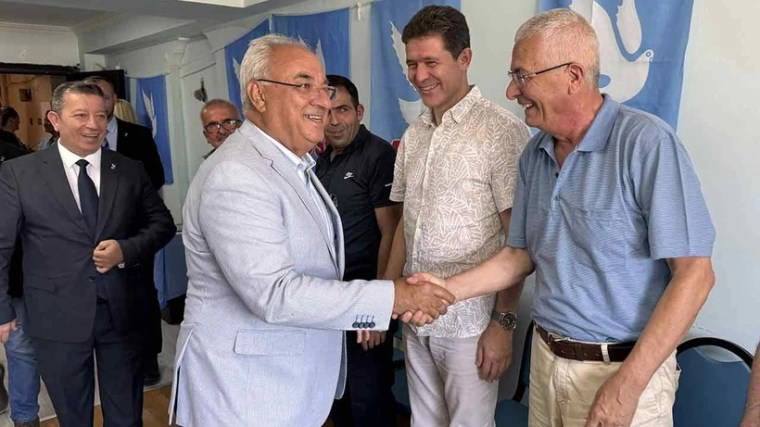 lideri Aksakal, burada kendisiyle bayramlaşmaya gelen partililerle bayramlaştı.