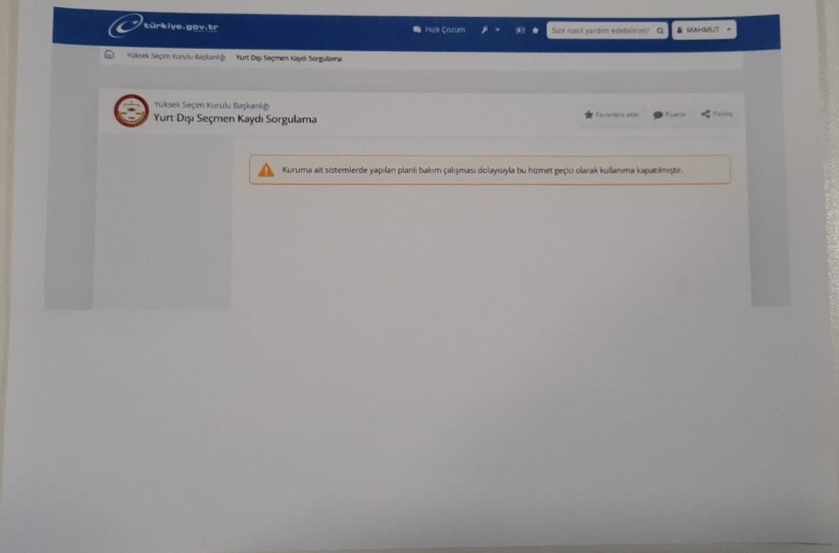 1- E-devlet üzerinden yurt dışı ve yurt içi seçmen kaydı sorgulaması yapılamıyor.