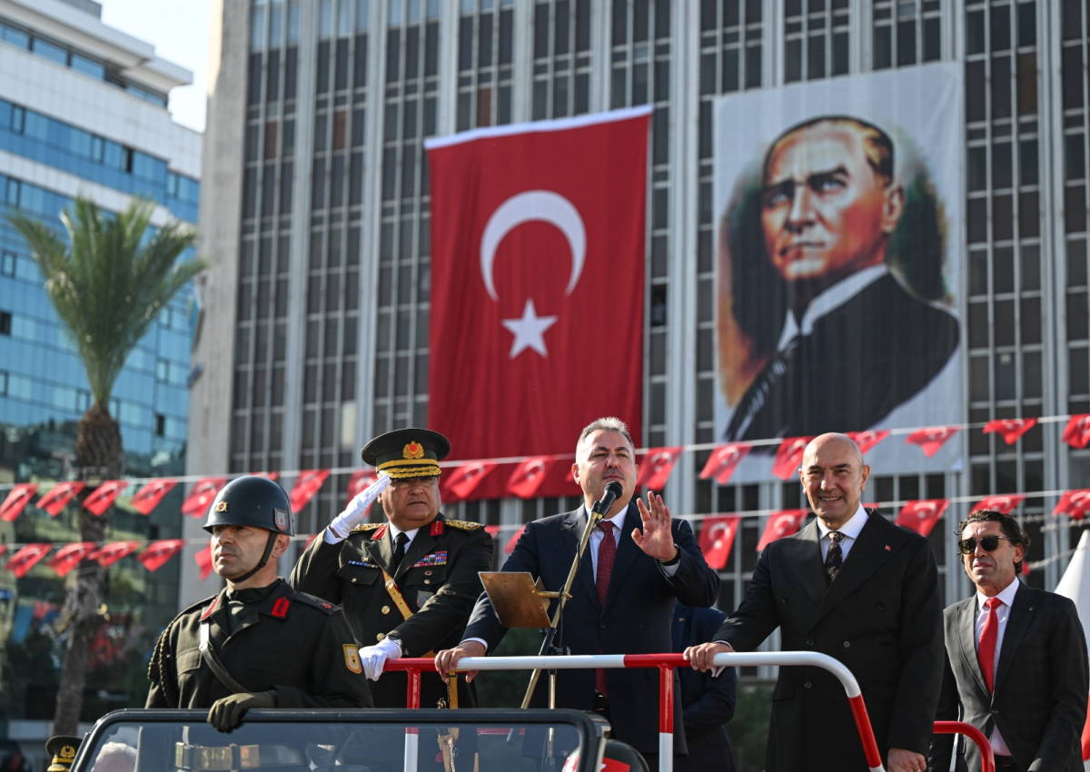 İzmir, Türkiye Cumhuriyeti’nin kuruluşunun 100. yılını coşkuyla kutladı. Günün son saatlerine kadar devam eden kutlamaların ilk adresi İzmir Valilik makamı oldu. İzmir Valisi Dr. Süleyman Elban, İzmir Büyükşehir Belediye Başkanı Tunç Soyer ile Ege Ordusu ve Garnizon Komutanı Orgeneral Kemal Yeni, 100. yıl tebriklerini kabul etti. Ardından kutlamalar Cumhuriyet Meydanı’nda devam etti.
