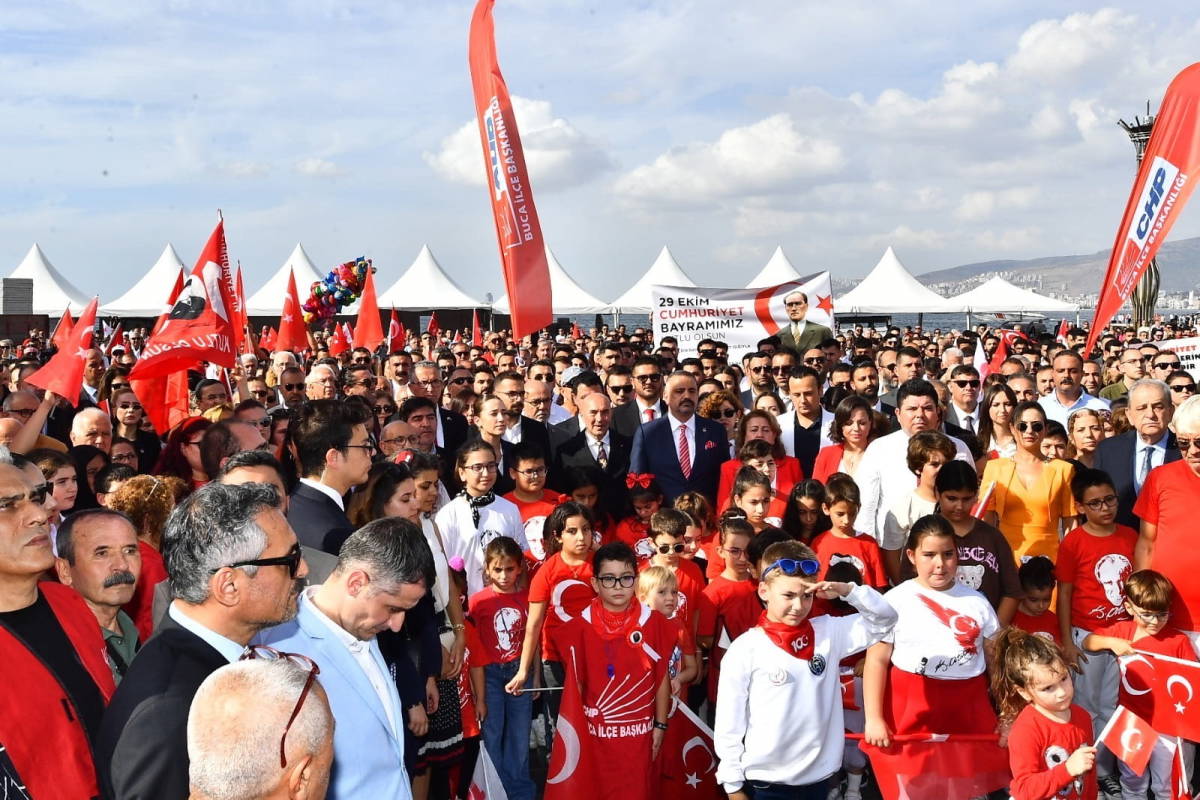 Cumhuriyetin 100. yılı dolayısıyla CHP İzmir İl Başkanlığı alternatif bir tören için bir araya geldi. CHP İzmir İl Başkanı Şenol Aslanoğlu, “Atatürk en büyük eserim dediği Cumhuriyeti gençlere emanet etti ve bugün o emanete daha çok sahip çıkma günü” dedi.