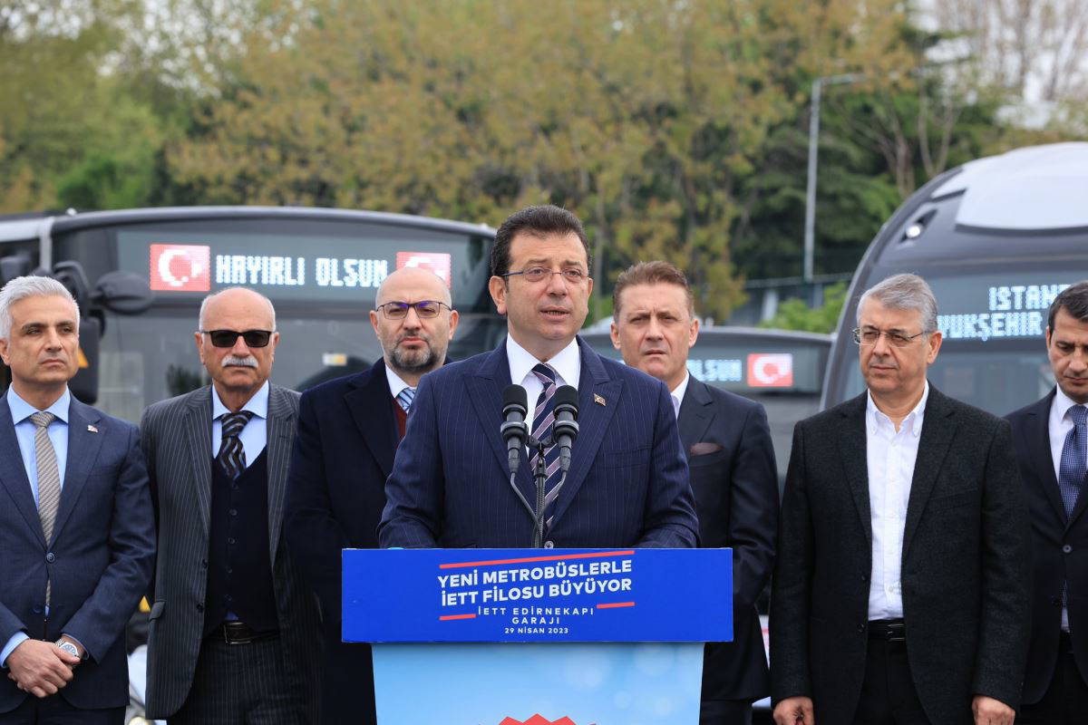 İstanbul Büyükşehir Belediyesi (İBB) Başkanı Ekrem İmamoğlu dün, hizmete alınan 92 metrobüsten 25’inin sahaya çıkış töreni, Karanfilköy kentsel dönüşüm projesi temel atma töreni ve Beykoz yatırımları törenlerine katıldı. İmamoğlu, “Biz bu araçların tamamını özkaynaklarımızı kullanarak İstanbul’a kazandırıyoruz. Ne yazık ki otobüs alımı için dış borçlanma onayı Cumhurbaşkanlığı’nca bekletildi” ifadelerini kullandı.