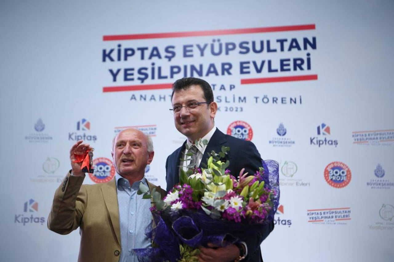 Bölgede yaşanan hukuki ve siyasi süreçleri özetleyen İmamoğlu, “Çok kısa sürede, özellikle 192 bağımsız birim ve 159 hak sahibiyle uzlaşma sağlandığını yakından takip etmiştim, biliyorum. 18 ay içerisinde, tüm engellemelere rağmen, sorunlar çözüldü ve Eyüpsultan Yeşilpınar Evleri’nin o dönemde temeli atıldı. Özellikle inşaatın başlamasıyla birlikte, yine ne yazık ki, engellemeyle ilgili çalışmalar, siyasi saiklerle müdahaleler devam etti. Ve ne yazık ki, tam 6 ay burada inşaatlar durdurularak, aslında zamanımızdan çalındı. Bugün sizlerin evini teslim ettiğimiz gibi, buranın büyük bir kısmını da teslim edebilirdik. Ama bütün bunlara rağmen ve özellikle ekonomik zorluklara rağmen, maliyetlerin neredeyse 1’e 3 arttığı bir ortamda, insanların ceplerini koruyarak, onları özellikle bu artışlardan etkilenmemelerini sağlayarak bir süreç yönetildi. Bu şeffaf ve ahlaklı süreç sonucunda, işte bugüne gelindi” şeklinde konuştu.