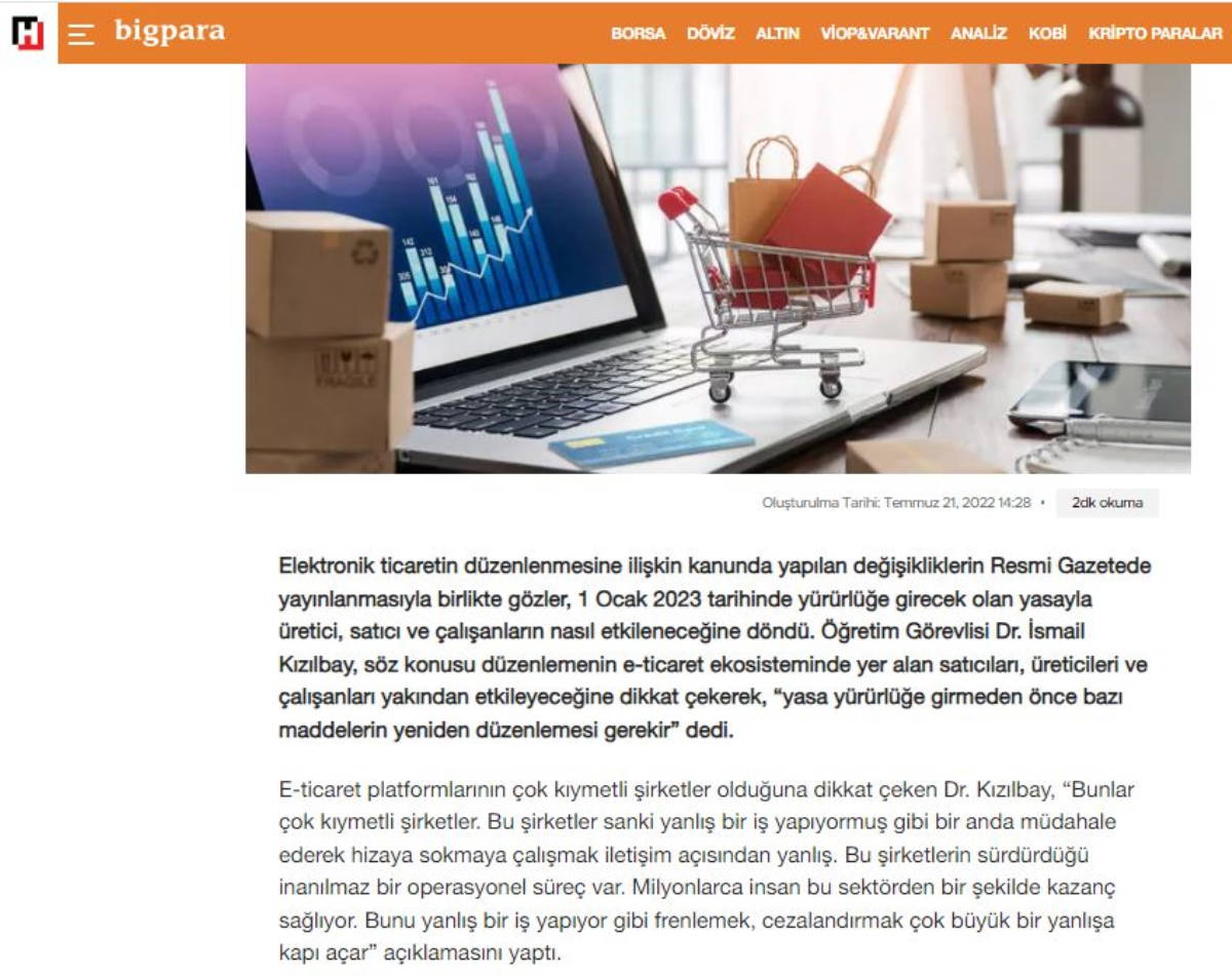 Hürriyet, 21 Temmuz 2022 tarihli haberinde öğretim görevlisi Dr. İsmail Kızılbay’ın e-ticaret platformlarının çok kıymetli şirketler olduğuna değinerek “Bunlar çok kıymetli şirketler. Bu şirketler sanki yanlış bir iş yapıyormuş gibi bir anda müdahale ederek hizaya sokmaya çalışmak iletişim açısından yanlış” dediğine yer veriyor.