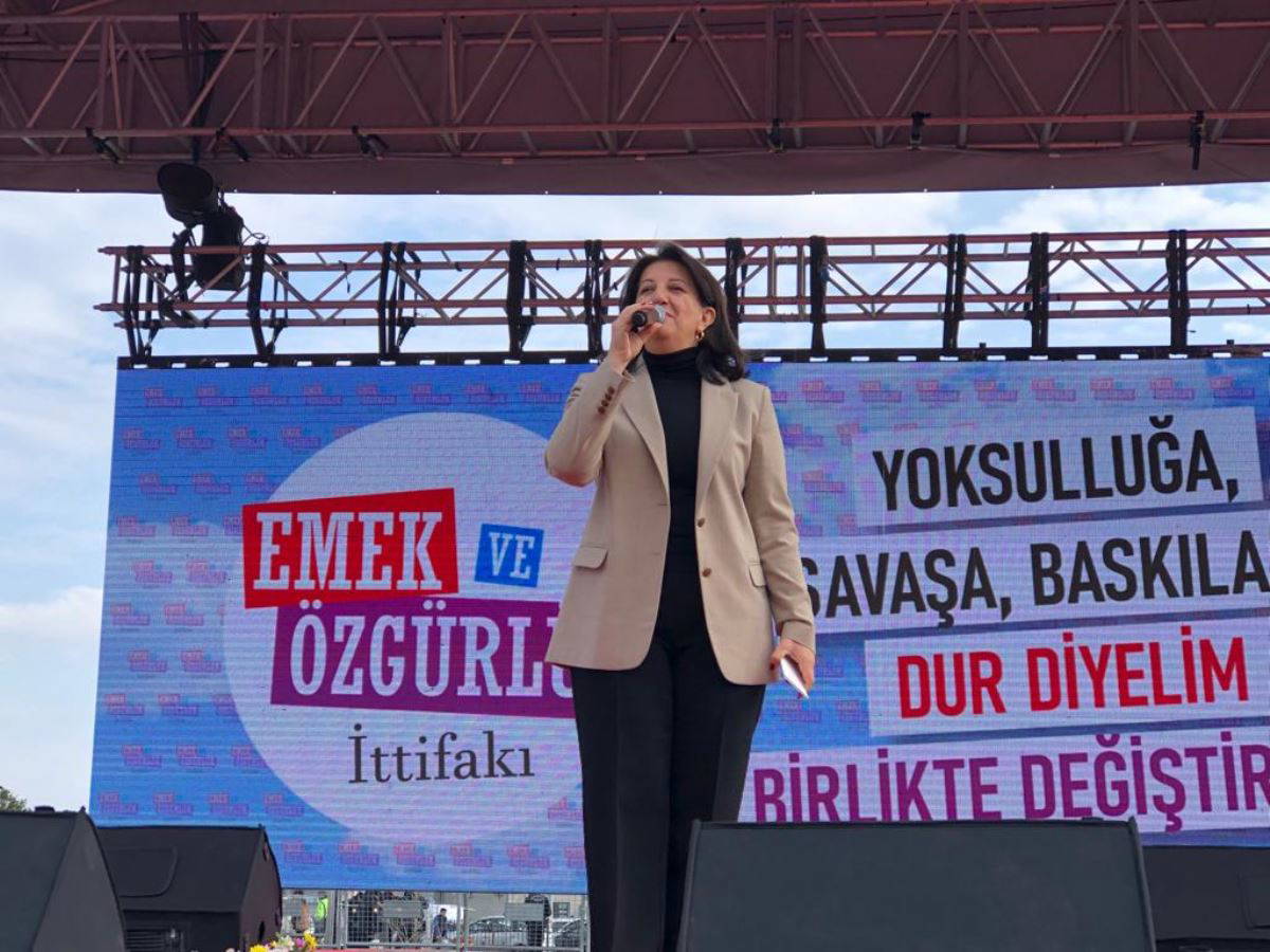 Mitingde konuşan HDP Eş Genel Başkanı Buldan, savaşa, yoksulluğa, baskılara karşı “Dur” demek için bir arada olduklarını söyledi.