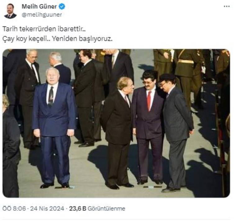 Güner, fotoğrafa bir de “Tarih tekerrürden ibarettir.. Çay koy keçeli… Yeniden başlıyoruz” notunu düştü.