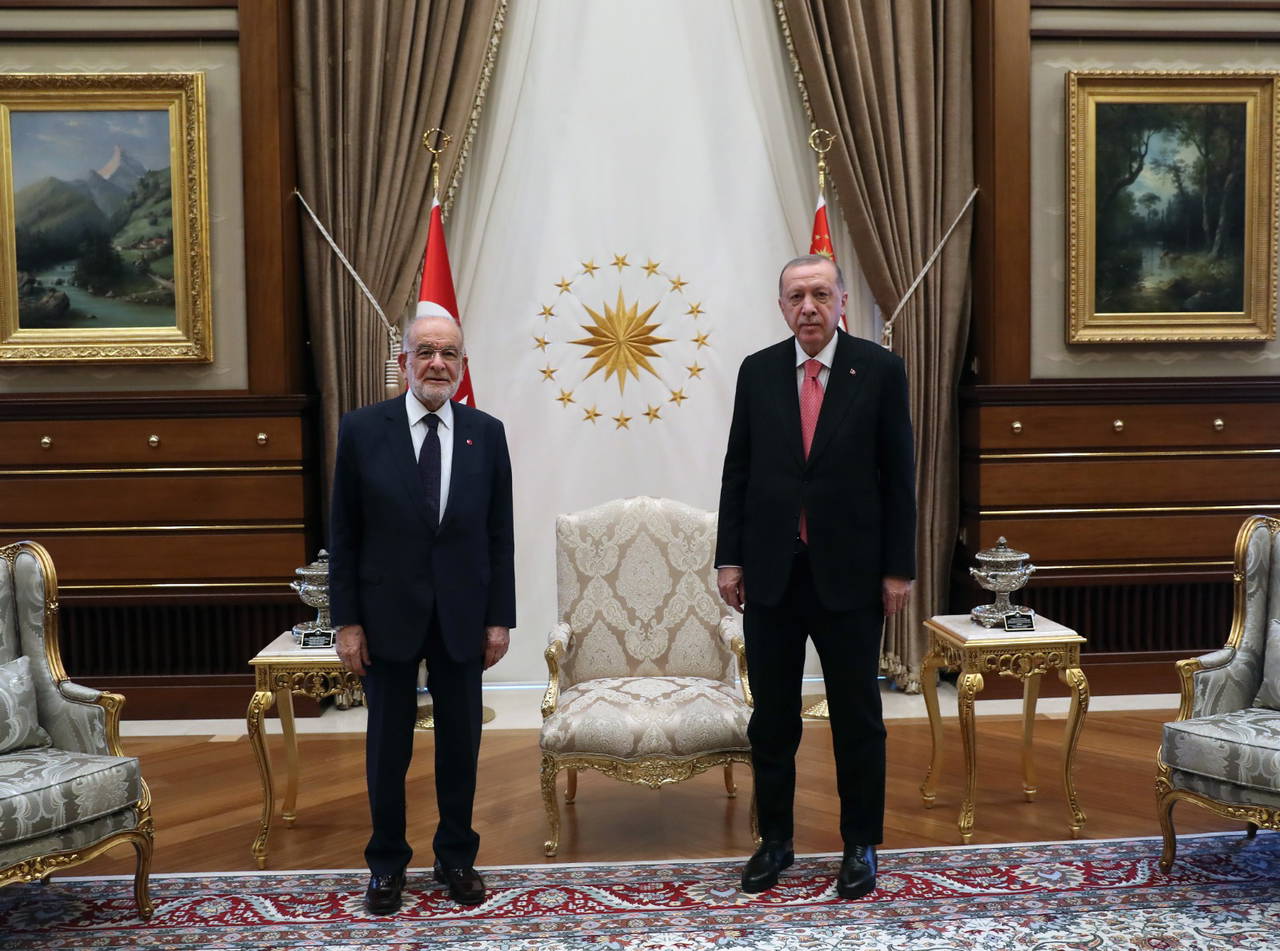 AKP'li Cumhurbaşkanı Recep Tayyip Erdoğan, Cumhurbaşkanlığı Sarayı'nda Saadet Partisi Genel Başkanı Karamollaoğlu'nu kabul etti.