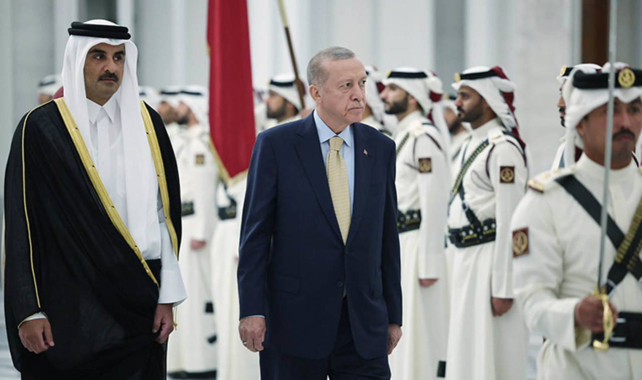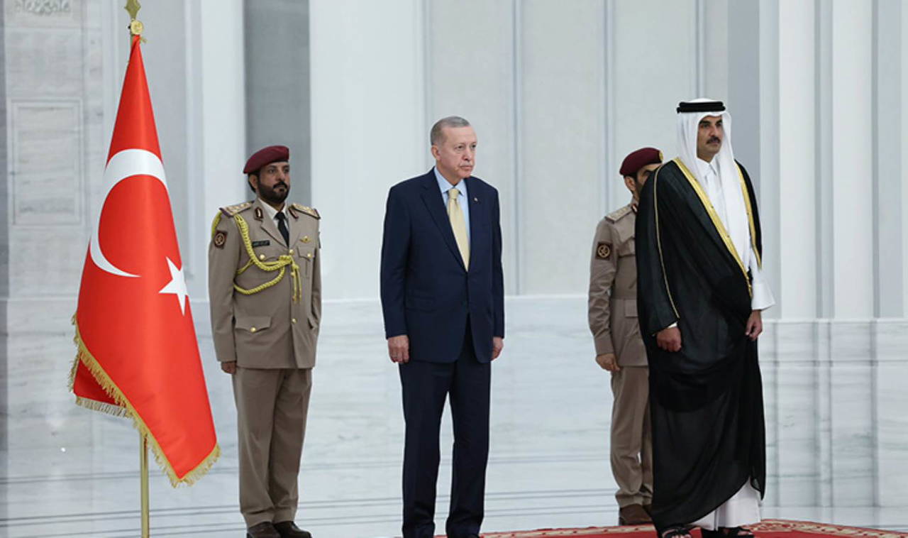Cumhurbaşkanı Erdoğan, Katar Emiri Şeyh Temim tarafından resmî törenle karşılandı.