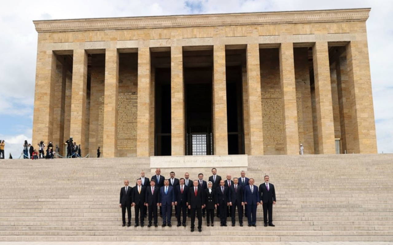 AKP'li Cumhurbaşkanı Recep Tayyip Erdoğan, yeni kabine üyeleriyle birlikte Anıtkabir’i ziyaret ederek Atatürk’ün mozolesine çelenk bıraktı.