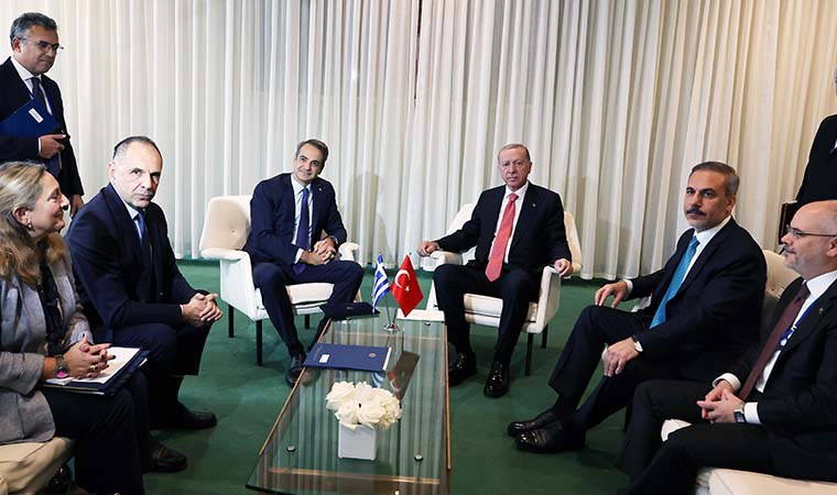 Erdoğan, genel kurula hitabının ardından BM Genel Merkezi'nde Miçotakis'i kabul etti.