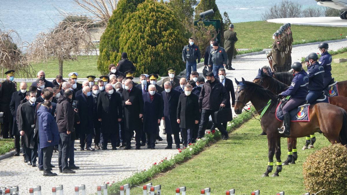 Şehitler Abidesi'ndeki anma törenine TBMM Başkanı Mustafa Şentop, kabine üyeleri ve MHP Genel Başkanı Devlet Bahçeli de katıldı. Şehitler Abidesi'ndeki tören AKP'li Cumhurbaşkanı Erdoğan'ın Atatürk Anıtı’na çelenk bırakmasıyla başladı.