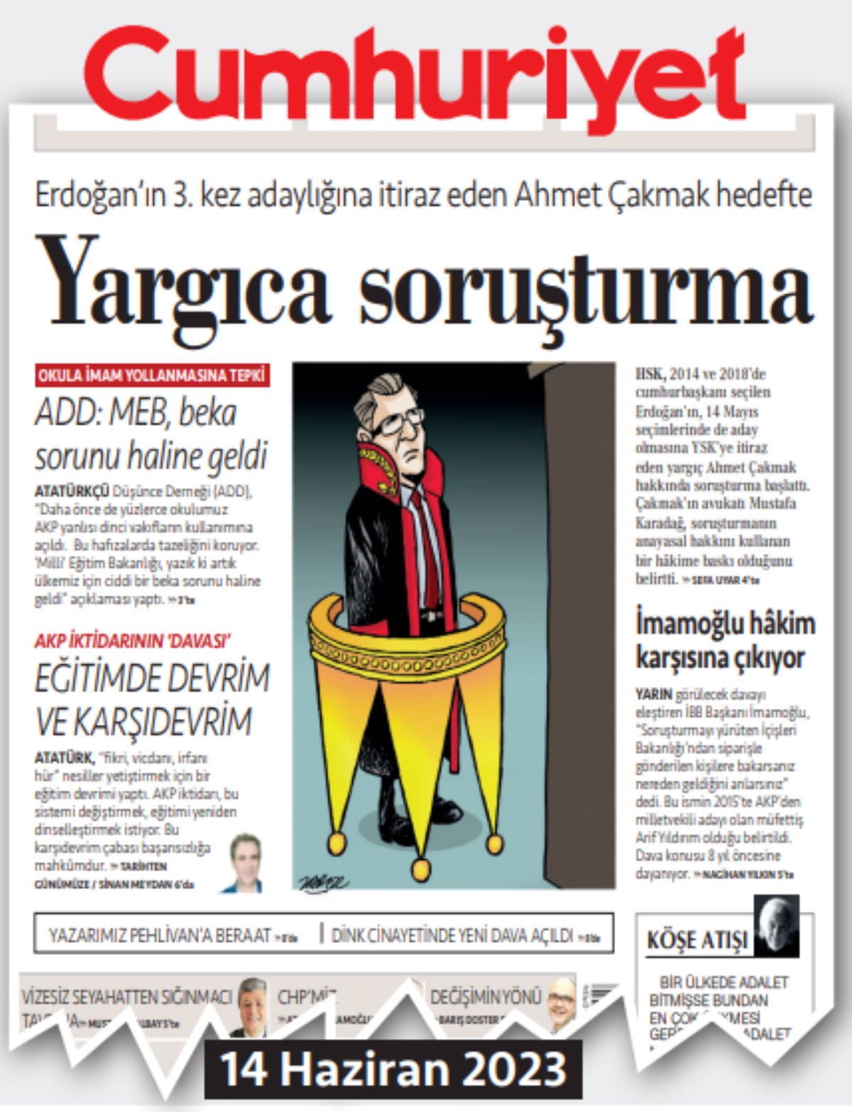 Yargıç Ahmet Çakmak, Cumhurbaşkanı Recep Tayyip Erdoğan’ın üçüncü kez adaylığına, Yüksek Seçim Kurulu’na (YSK) verdiği dilekçeyle itiraz etti. Bunun üzerine Hâkimler ve Savcılar Kurulu (HSK) Çakmak hakkında soruşturma başlattı. Farklı gerekçelerle de hakkında soruşturma yürütülen Çakmak’a iki kez yer değiştirme cezası verildi. Hâkimler ve Savcılar Yasası’na göre 2 kez yer değiştirme cezası verilen kişinin meslekten çıkarılacağı düzenleniyor. Bu nedenle Çakmak’ın meslekten ihracı istendi.