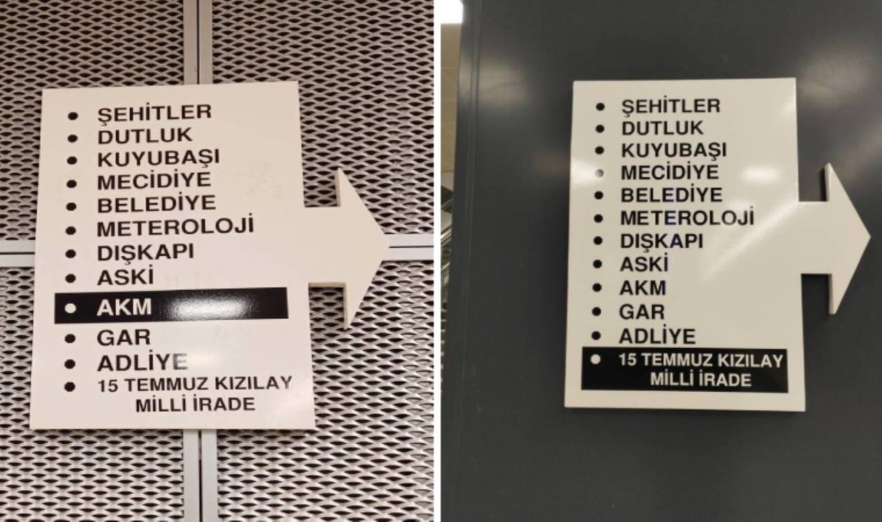 Söz konusu tabelalarda “Atatürk Kültür Merkezi” istasyonunun adı sadece “AKM” olarak yer alırken yurttaşlar bu duruma tepki gösterdi. Kızılay’daki istasyonun adı ise “15 Temmuz Kızılay Milli İrade” olarak tam haliyle yer aldı. Bunun yanı sıra hattın üzerinde yer alan “Meteoroloji” istasyonunun adı, tüm tabelalara eksik harfle “Meteroloji” olarak yazıldı.