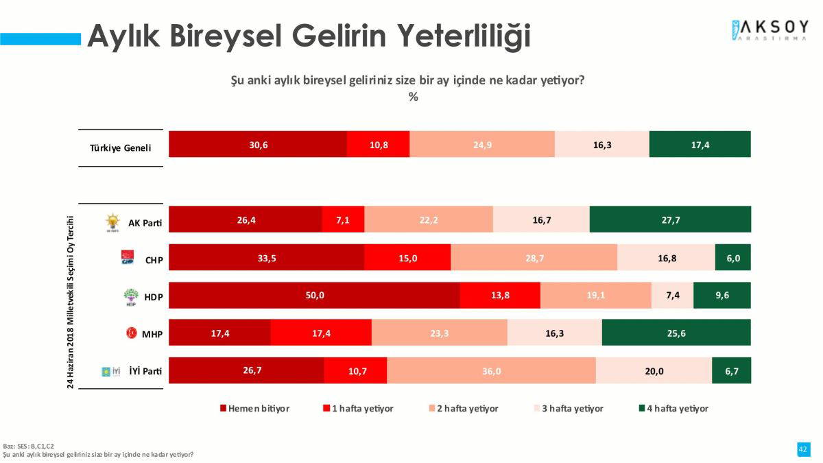 En önemli özelliklerinden biri kendi kendine yetebilmek olan orta gelir grubu bu özelliğini kaybetmiş durumda. Artık aylık kazancı 2 hafta içinde bitenlerin oranı yüzde 66,3. Genelde etrafına destek olan orta sınıflar artık yardım almaya muhtaç hale geldi. Aşağıdaki tablo bunun somut sonucu.