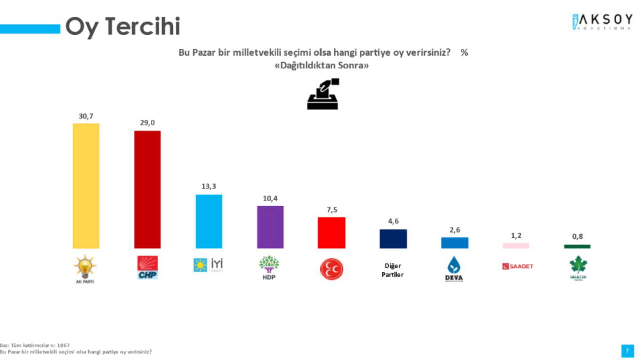 Bu hafta yaptığımız ölçüme göre partilerin oy dağılımı aşağıdaki gibi: