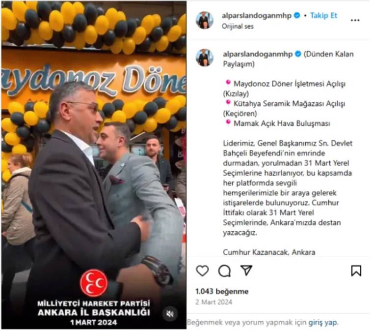 MHP Ankara İl Başkanı Alparslan Doğan, 1 Mart 2024'te yerel seçim çalışmaları kapsamında il yönetimiyle birlikte Kızılay'daki şubenin açılışına katıldı. 11 Ekim 2024'te de AKP Ankara Akyurt Belediye Başkanı Hilal Ayık, ilçe yöneticileriyle şube açılışında kurdele kesti.