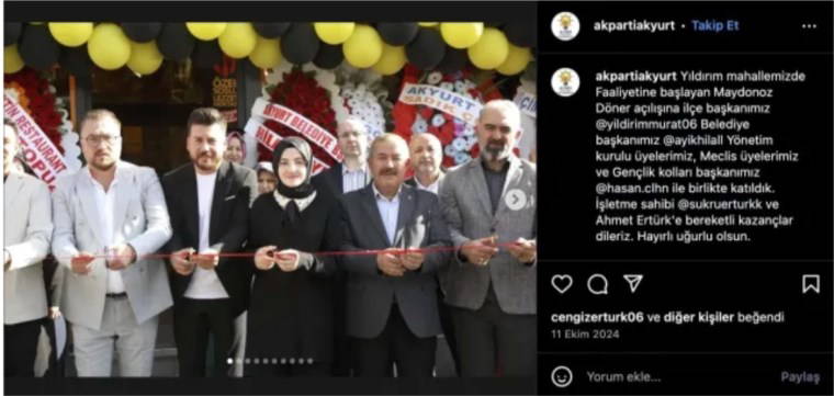 Karar'da yer alan habere göre Maydonoz Döner'in bazı şubelerinin açılışının iktidar mensupları tarafından yapıldığının ortaya çıktı.