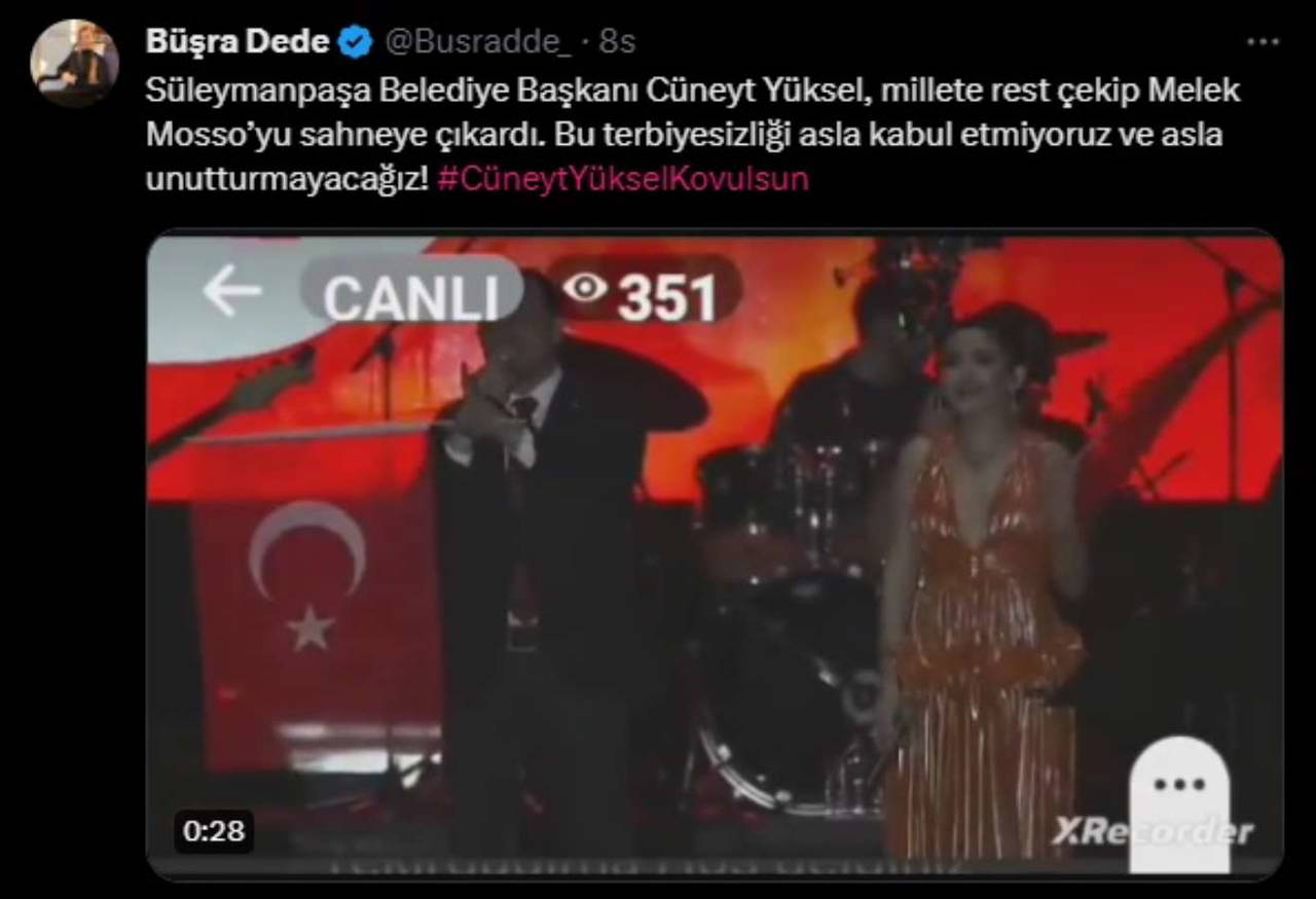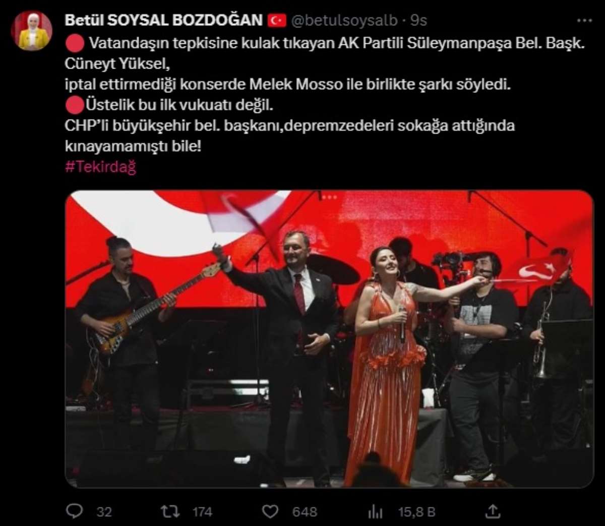 Konserin ardından Süleymanpaşa Belediye Başkanı Cüneyt Yüksel, iktidara yakın isimler tarafından hedef alındı. AKP'ye yakın birçok sosyal medya kullanıcısı "Defol Ak Parti'den, istifa et" gibi paylaşımlar yaptı.