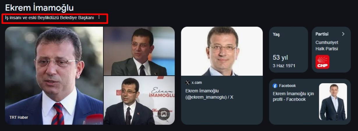 İmamoğlu'nun ismi Google'da aratıldığında, artık yalnızca "İş insanı ve eski Beylikdüzü Belediye Başkanı" ifadesi çıkıyor.