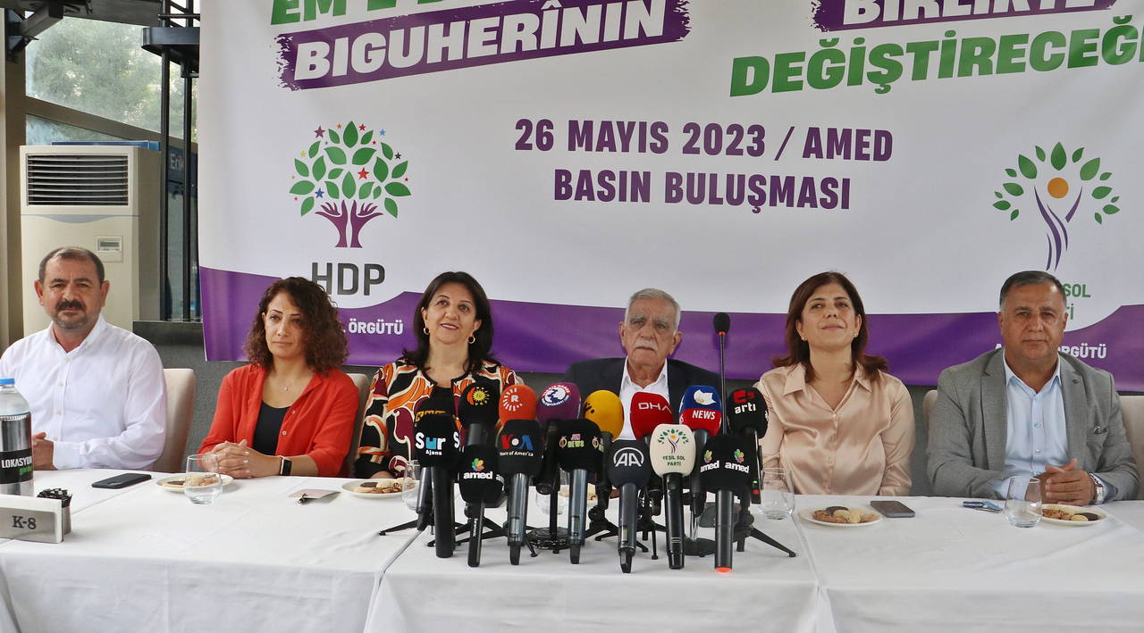 HDP Eş Genel Başkanı Pervin Buldan, Mardin eski Büyükşehir Belediye Başkanı Ahmet Türk Yeşil Sol Parti’den seçilen milletvekilleri ile Diyarbakır’da bir otelde basın mensuplarıyla bir araya geldi.