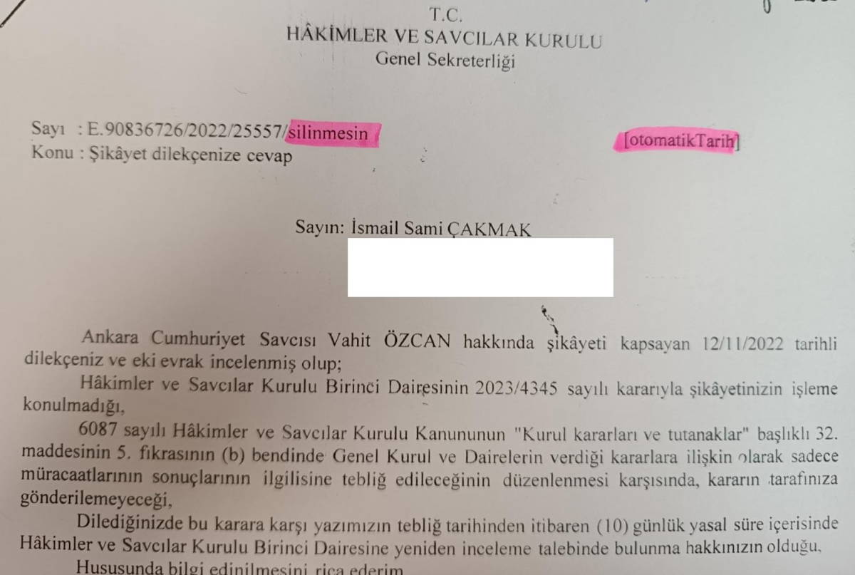 Avukat İsmail Sami Çakmak, kararı veren ve kararı kişisel bilgileriyle birlikte Diyanet’e gönderen Ankara Cumhuriyet Savcısı Vahit Özcan’ı Hâkimler ve Savcılar Kurulu’na (HSK) şikâyet etti.