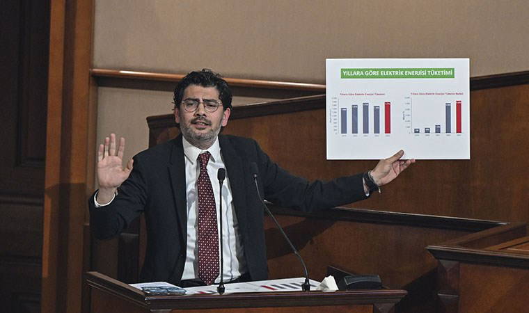 Su zam teklifine değinen Kaynar, "Ekrem İmamoğlu, İBB mazbatasını aldığında 1 metreküp su 4 liraydı. 2023 yılı sonu itibarıyla 23,72 liraydı. Zam teklifinde en düşük tarifede su 32,28 lira. 'Suyu bedava yapacağız' diyenler, 5 yılda yüzde 800 zam yaparak suyu 4 liradan 32,28 liraya çıkardı" ifadelerini kullandı.