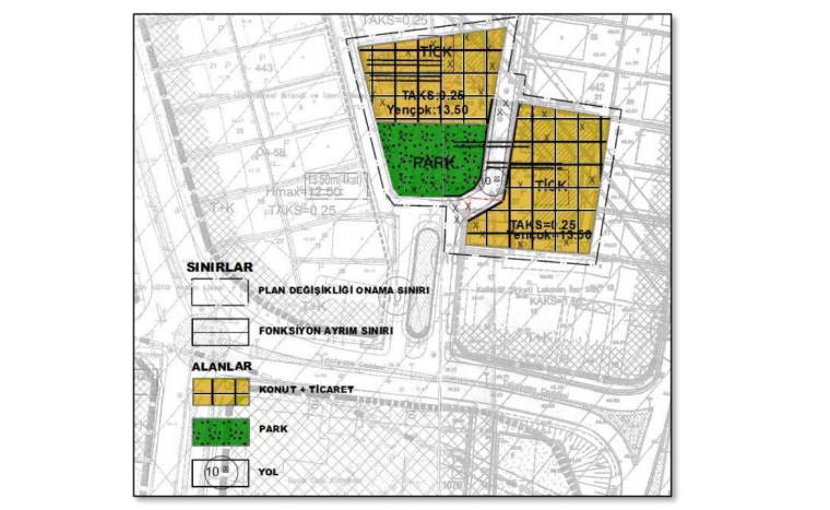 Çevre, Şehircilik ve İklim Değişikliği Bakanlığı’nda onaylanan ve askıya çıkarılan plana göre imar planı değişikliği kapsamında planlama alanının yüzde 70’lik kısmı “ticaret ve konut alanı”, yüzde 19’luk kısmı “park alanı” ve yüzde 11’lik kısmı ise “yol alanı” olarak planlandı.