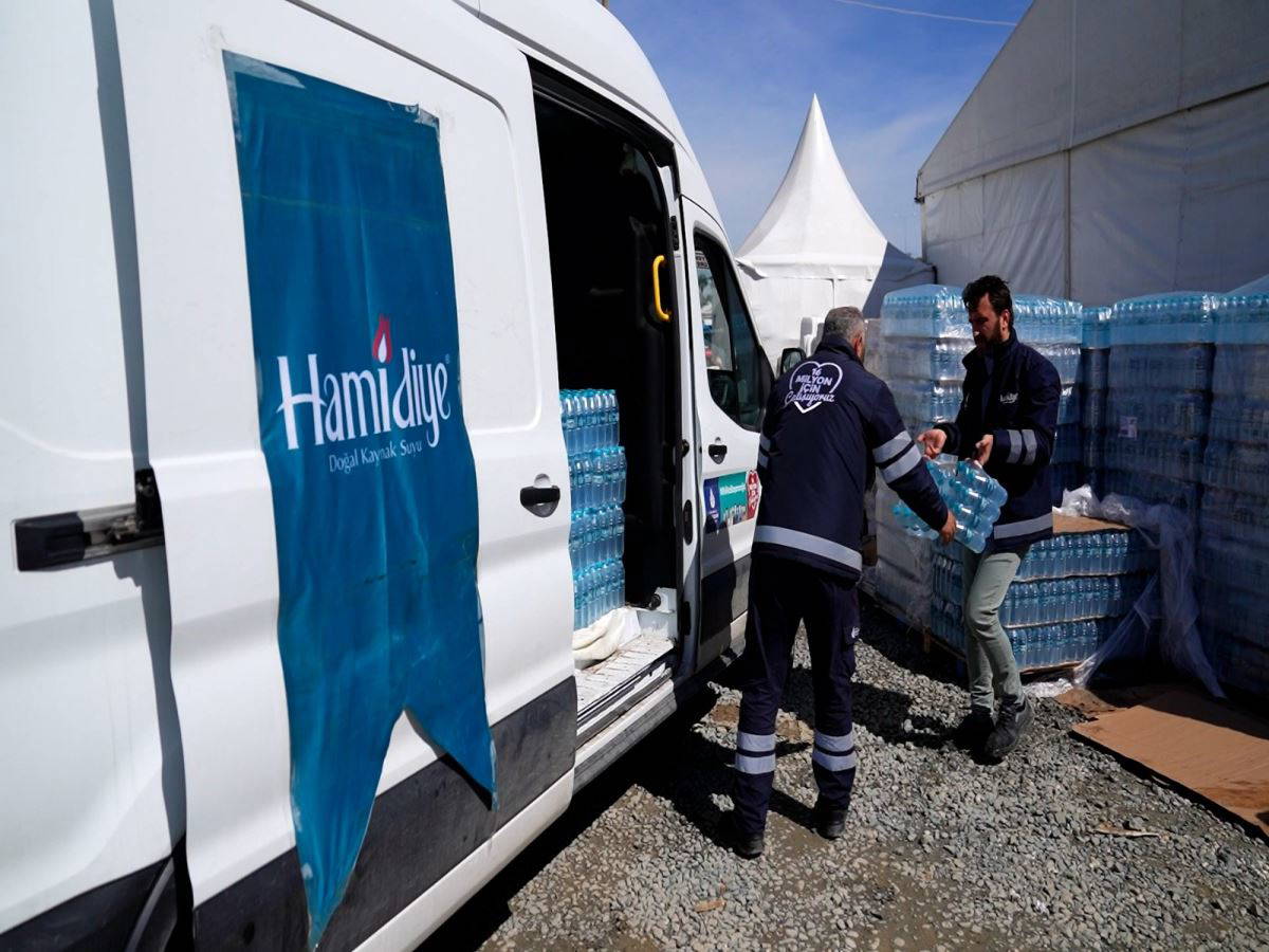Kahramanmaraş merkezli 7,7 ve 7,6 büyüklüğündeki depremler, 11 ili derinden etkiledi ve bölgede büyük bir yıkıma neden oldu. Depremin ilk anından itibaren bölgenin su ihtiyacını karşılamaya yönelik çalışmalara katılan Hamidiye Su, İstanbul Büyükşehir Belediyesi Afet Koordinasyon Merkezi (AKOM) ile beraber, vatandaşlardan gelen destekler de dahil olmak üzere günde ortalama 3 TIR pet su gönderimi yaptı.
