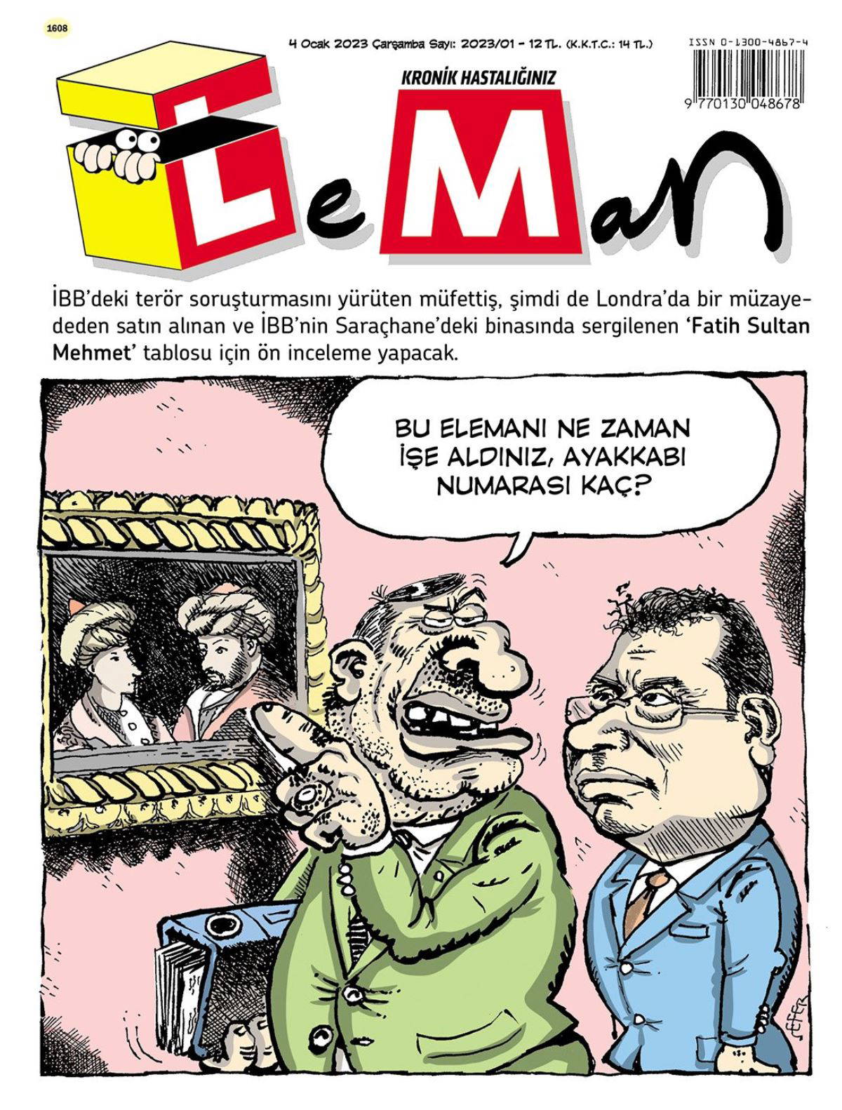 Kapakta, İBB Başkanı Ekrem İmamoğlu ve Fatih Sultan Mehmet tablosunun olduğu karikatür paylaşıldı.