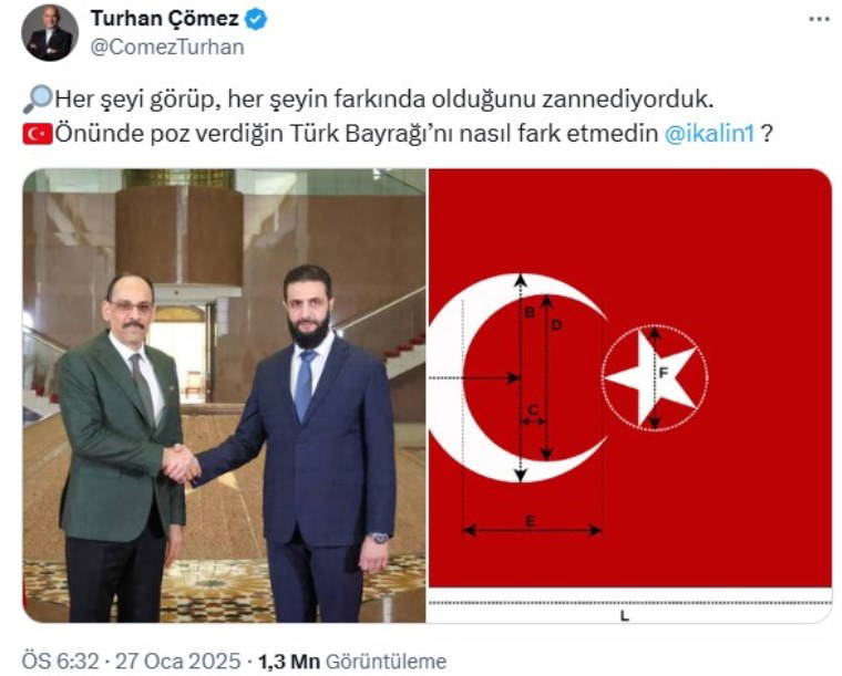 Çömez, Türk bayrağıyla ilgili standart ölçüleri paylaşarak şu ifadeleri kullandı: