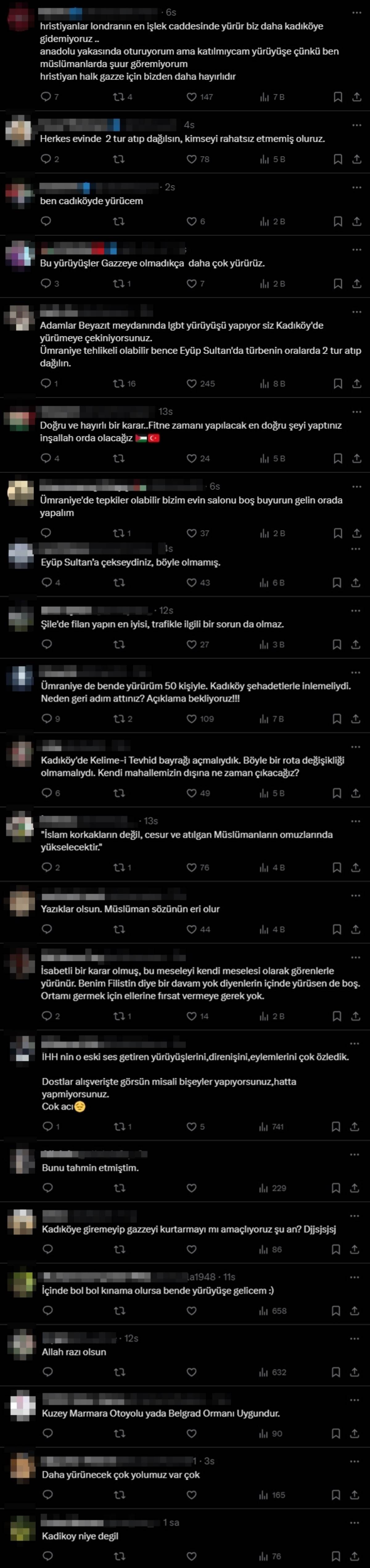 'Kadıköy'e giremeyip Gazze'yi kurtarmayı mı amaçlıyoruz?', 'Böyle olmamış Eyüpsultan'a alsaymışsınız' gibi youmlar yapıldı.