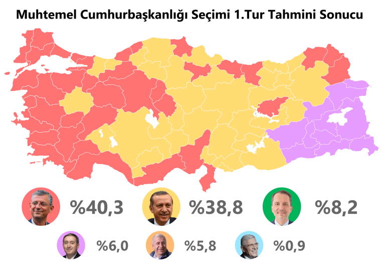 Türkiye Geneli - Cumhurbaşkanlığı 1.Tur Seçim Sonucu Tahmini (Mart 2025)
