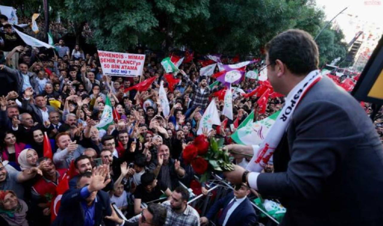 İBB Başkanı Ekrem İmamoğlu, bugün Batman’da miting düzenledi. Konuşma yapacağı alana girerken meşalelerle karşılanan İmamoğlu’nu taşıyan otobüs, yoğun ilgi altında güçlükle ilerledi.