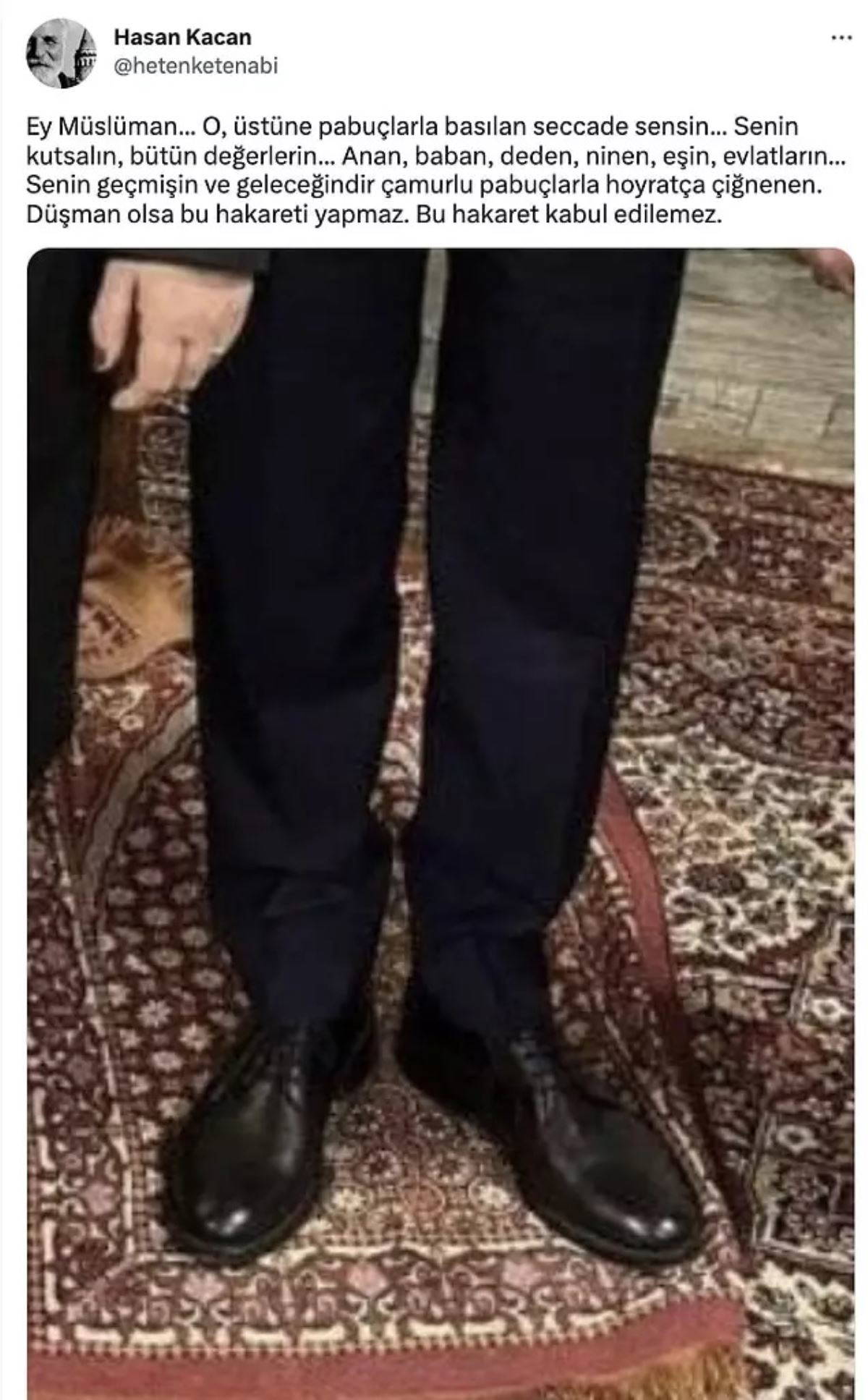 Kaçan, Kılıçdaroğlu'nun fotoğrafıyla ilgili, "Ey Müslüman... O, üstüne pabuçlarla basılan seccade sensin... Senin kutsalın, bütün değerlerin... Anan, baban, deden, ninen, eşin, evlatların... Senin geçmişin ve geleceğindir çamurlu pabuçlarla hoyratça çiğnenen. Düşman olsa bu hakareti yapmaz. Bu hakaret kabul edilemez" ifadelerini kullanmıştı.