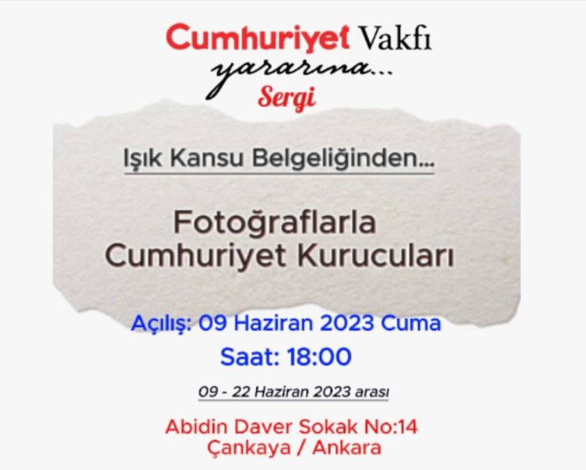 Cumhuriyet Vakfı Genel Sekreteri Işık Kansu’nun belgeliğinden seçilen fotoğraflardan oluşan “Fotoğraflarla Cumhuriyet Kurucuları” adlı fotoğraf sergisi, Ankara CKM’de sanatseverler ile buluşacak.