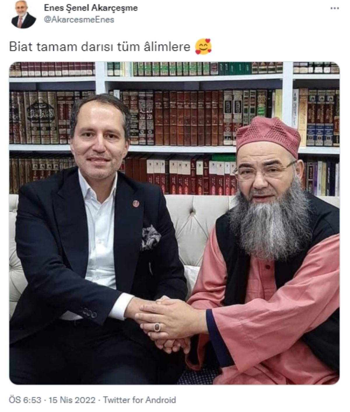 Akarçeşme'nin paylaştığı, Fatih Erbakan ve Ahmet Mahmut Ünlü'nün samimi fotoğrafının hikayesi geçen yılın kasım ayına dayanıyor. Erbakan'ın Ünlü'nün evine yaptığı ziyarette çekilen o fotoğraf, Ünlü'nün kendi internet sitesinde yer almıştı. Ünlü'nün sitesinde ziyaretin içeriği "Üç saat kadar süren sohbette Merhûm Erbakan Hocamızla ilgili hâtıraları tâzelenen Cübbeli Ahmet Hoca “İlâhiyatlarda Ehl-i Sünnet’e muhâlif kişilerle yolumuzu ayıracağız” dediği için Fatih Erbakan Beyefendi’ye çok tebrîk ve teşekkürlerini arz etti. Derdi din olanların mutlakâ bu husûsta çok hassas olmaları gerektiğini ve kendisinde de bu hassâsiyeti gördüğünü beyân ederek gençliğimizin Ehl-i Sünnet dışı akımlara kapılmaması için el birliğiyle Ehl-i Sünnet’i müdafaa edeceklerine dâir sözleştiler" diyerek açıklanmıştı.