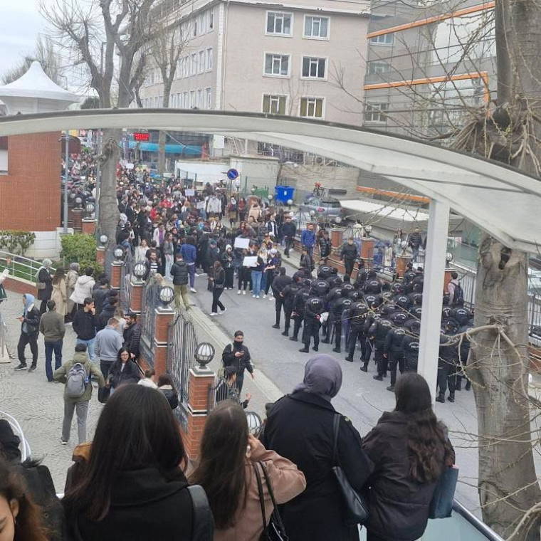 İstanbul Aydın Üniversitesi öğrencileri, İstanbul Büyükşehir Belediye Başkanı Ekrem İmamoğlu’na yönelik siyasi operasyona yönelik tepki göstermek amacıyla eylem gerçekleştirdi.