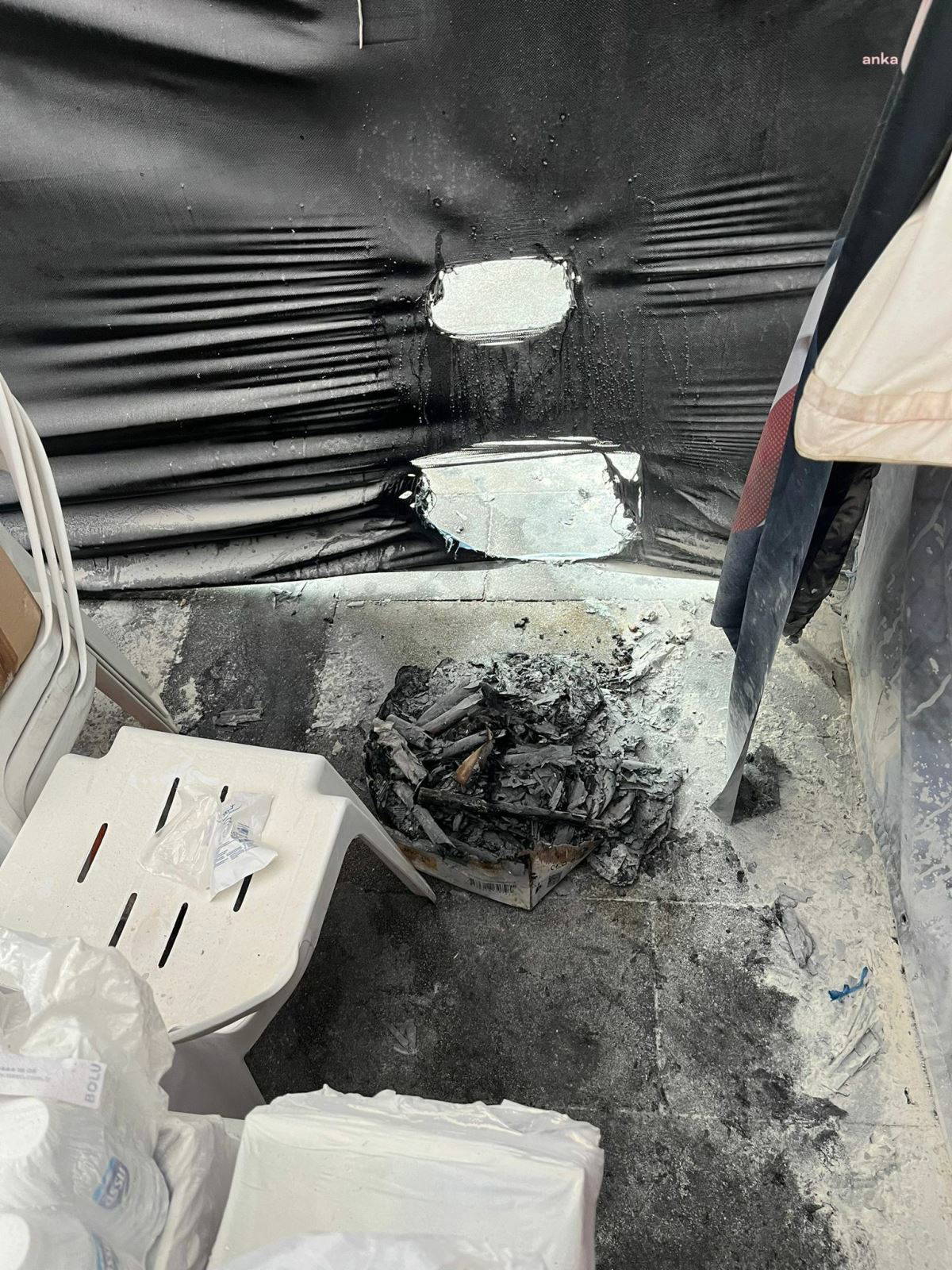 Saldırı sonrası çadırda maddi hasar oluştu. Seçim malzemeleri kullanılamaz hale geldi.