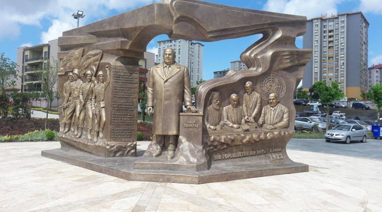 Ekrem İmamoğlu’nun Beylikdüzü Belediye Başkanlığı döneminde ilçeye Makarios’u gösteren bir rölyefi de içeren bir heykel dikildiği iddiası doğru. Ancak “Kıbrıs Anıtı” olarak bilinen heykelde sadece Makarios yer almıyor. Yaşam Vadisi Parkı’nda bulunan ve Azmi Sekban tarafından yapılan anıtta, en önde Rauf Denktaş’ın heykeli yer alıyor. Makarios’un rölyefi, anıtın Londra Antlaşması’nın tasvir edildiği bölümünde görülüyor.