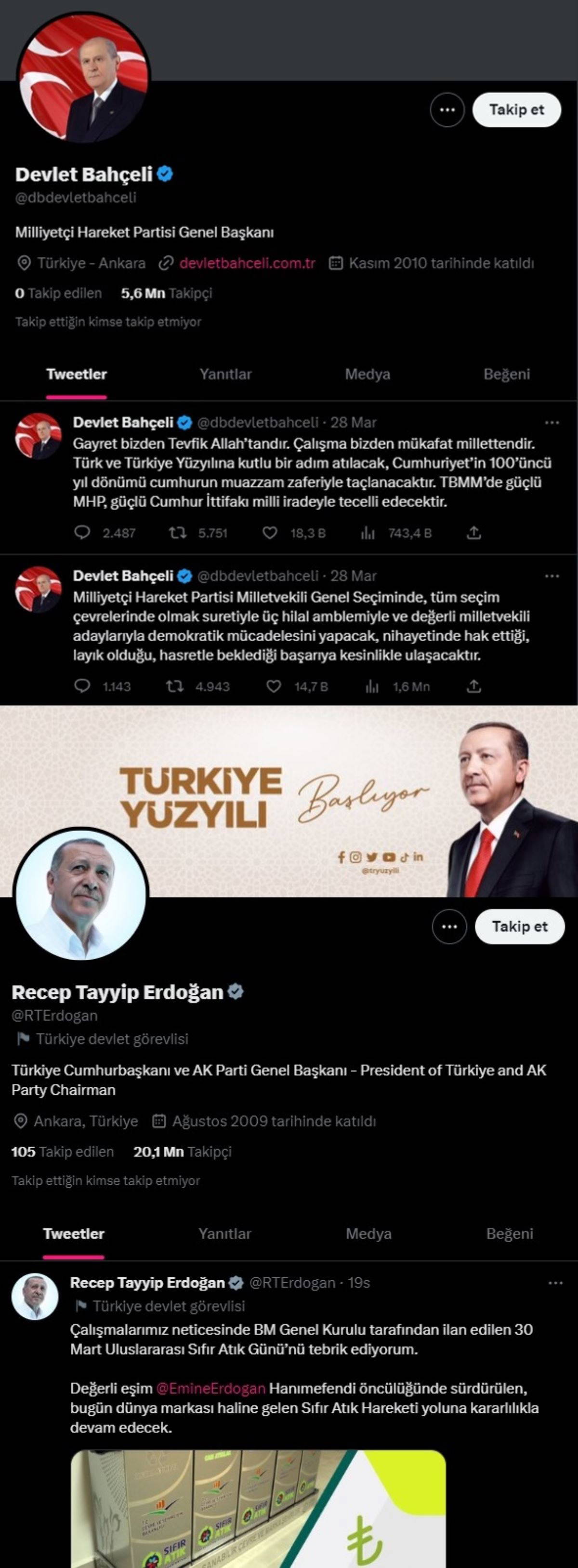 Saat 16.00 itibarıyla her iki liderin de Twitter hesaplarında yer alan son paylaşımlar şu şekilde: