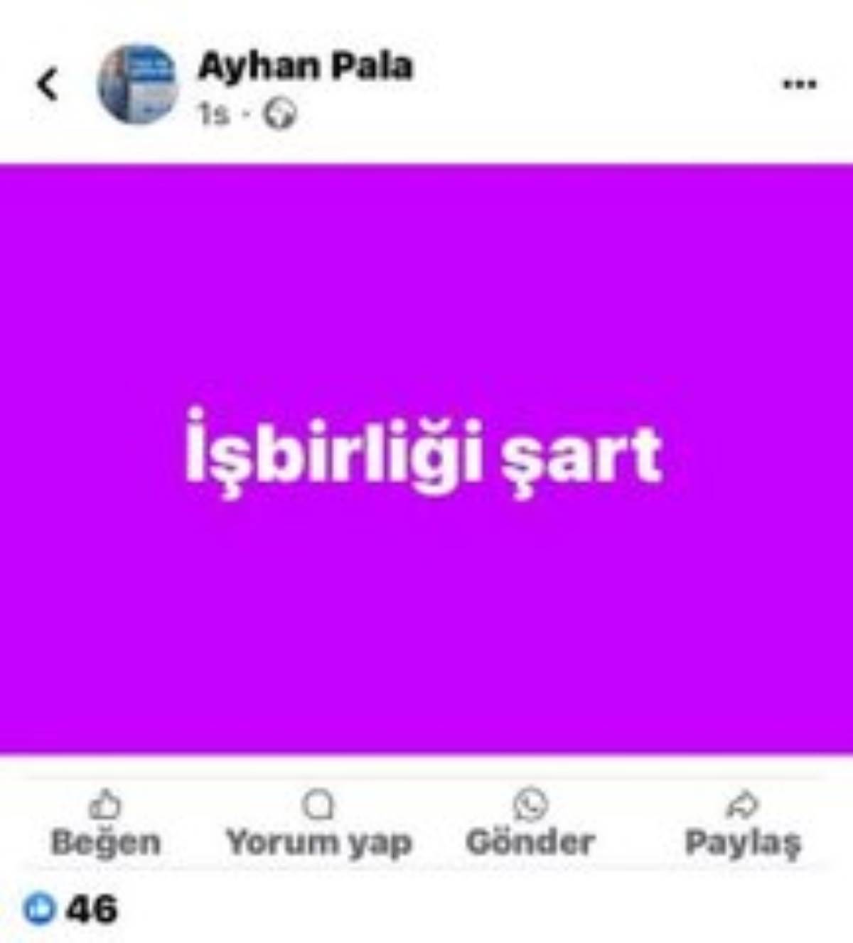 İYİ Parti Ortahisar Belediye Başkan Adayı olarak açıklanan Ayhan Pala sosyal medya hesabından "işbirliği" şart açıklaması yapmış ve bu mesaj da CHP ile ittifak çağrısı olarak algılanmıştı.