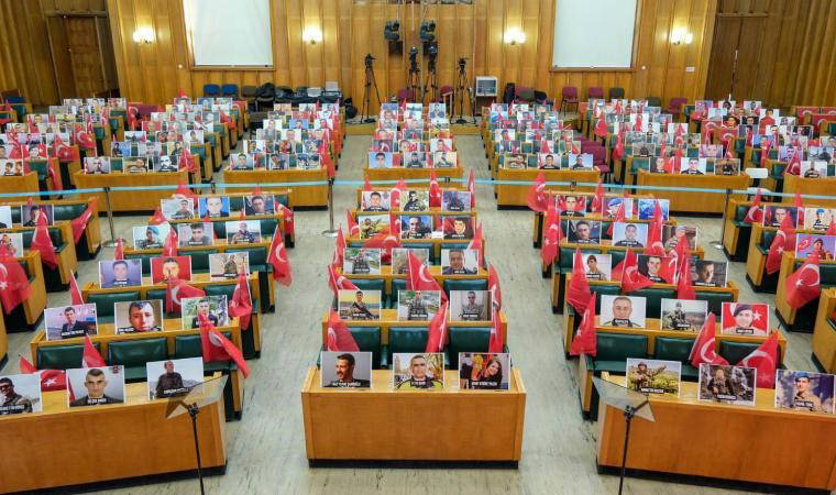 İYİ Parti Genel Başkanı Müsavat Dervişoğlu Partisinin grup toplantısında konuştu. İYİ Parti'nin bugün gerçekleşen grup toplantısının yapılacağı salona, terör örgütü tarafından şehit edilen Türk askerlerinin fotoğrafları yerleştirildi.