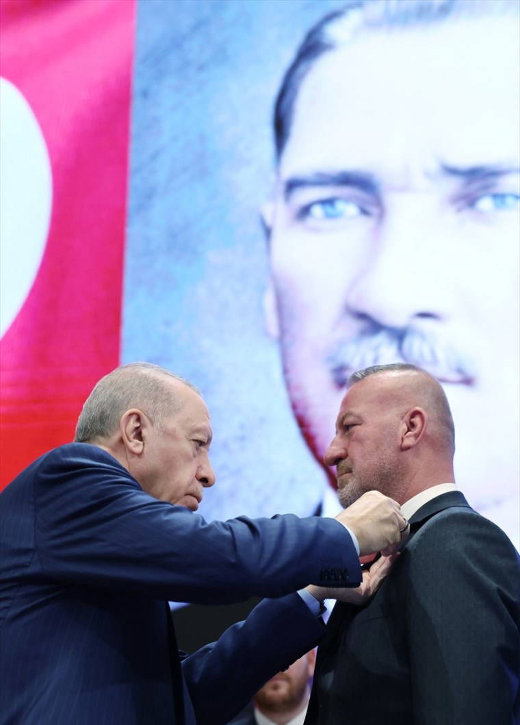 Özel ve Karabatı'ya parti rozetlerini AKP Genel Başkanı ve Cumhurbaşkanı Recep Tayyip Erdoğan taktı.
