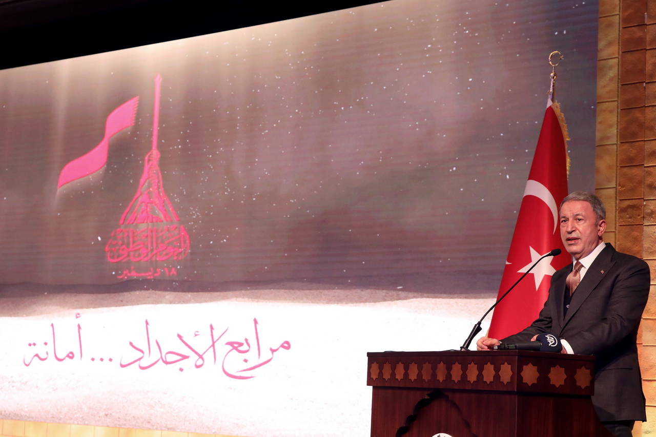 Resepsiyonda konuşan Bakan Akar, Katar'ın önemli ve anlamlı gününde bulunmaktan mutluluk duyduğunu belirtti. Akar, "Katar ile Türkiye'nin tarihi, kültürel ve ortak değerler çerçevesinde yaptıkları çeşitli faaliyetler olduğunu" belirtip askeri, siyasi, ekonomik, kültürel ve sosyal çalışmalarla "iki ülke arasındaki mevcut kardeşliği daha da pekiştirdiklerini" kaydetti.