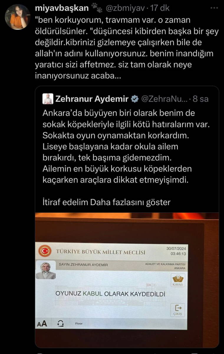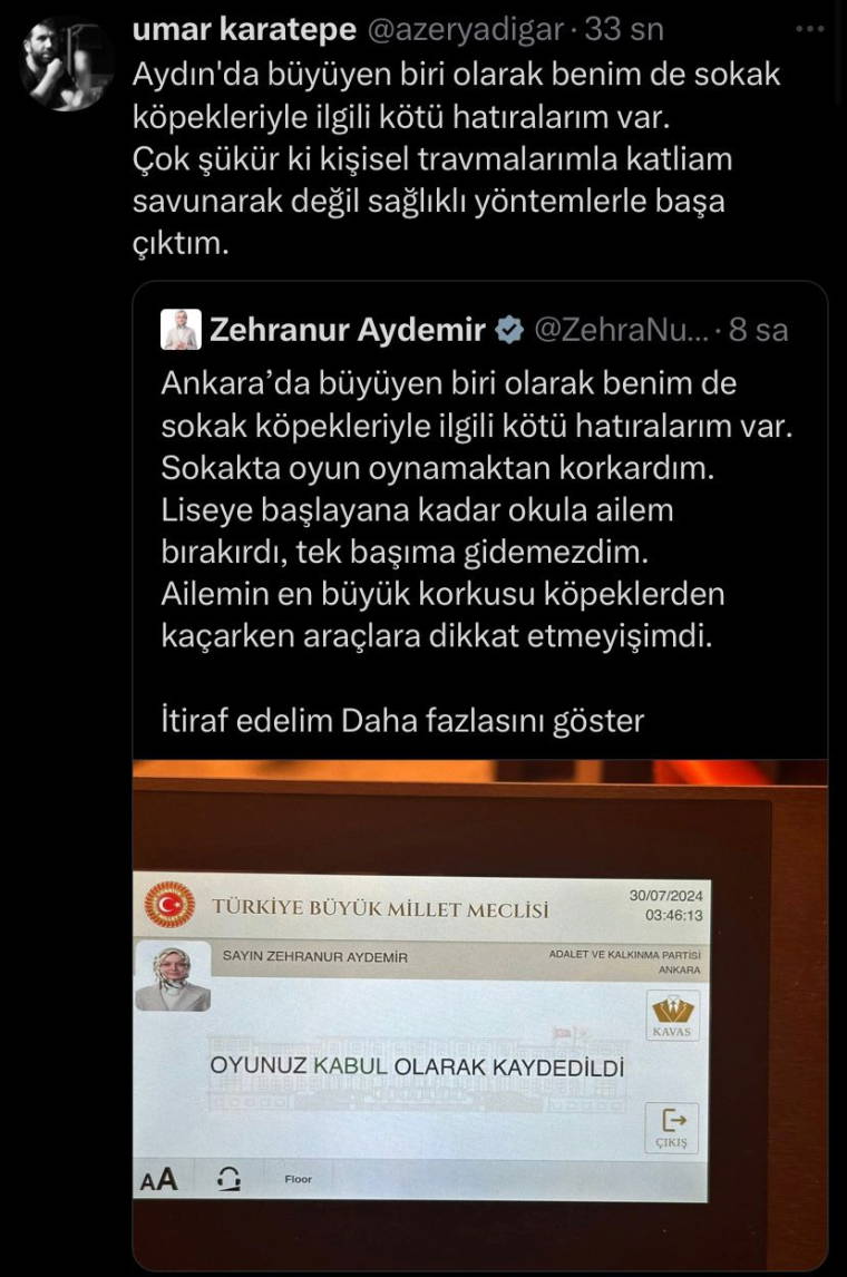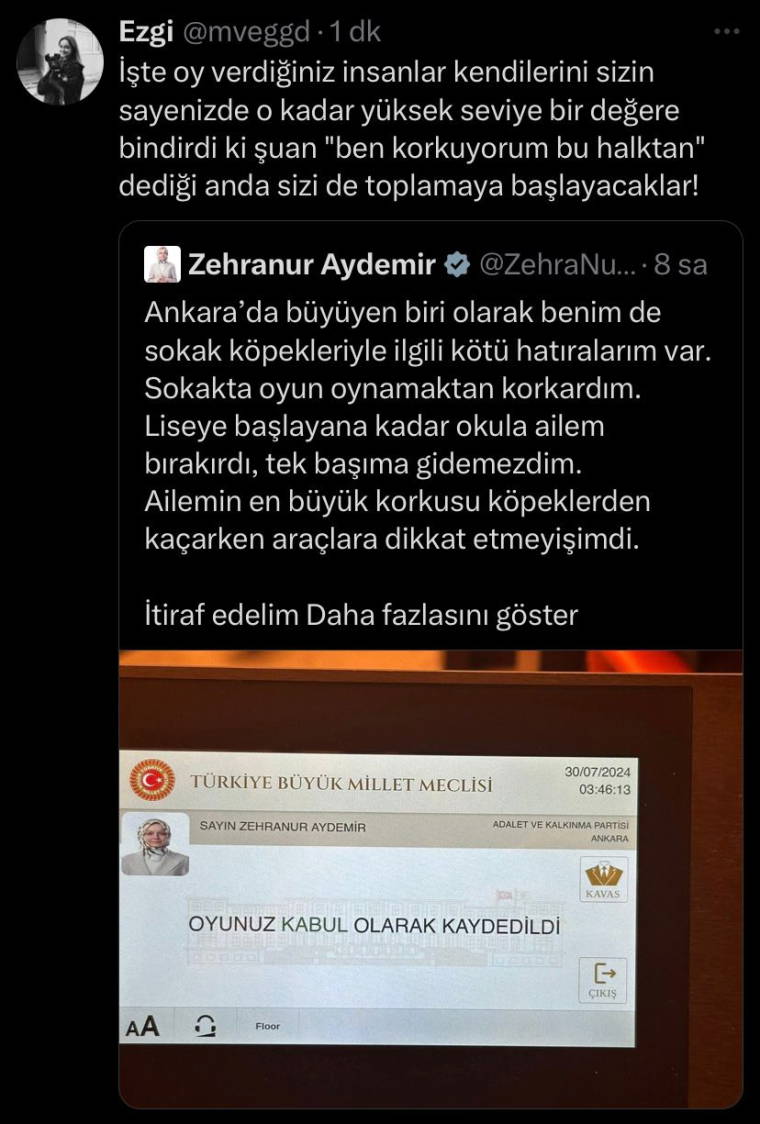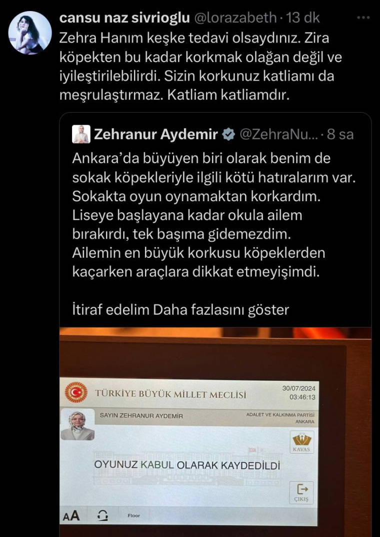 AKP'li Zehranur Aydemir'in söz konusu paylaşımı, sosyal medyada tepkilere neden oldu.