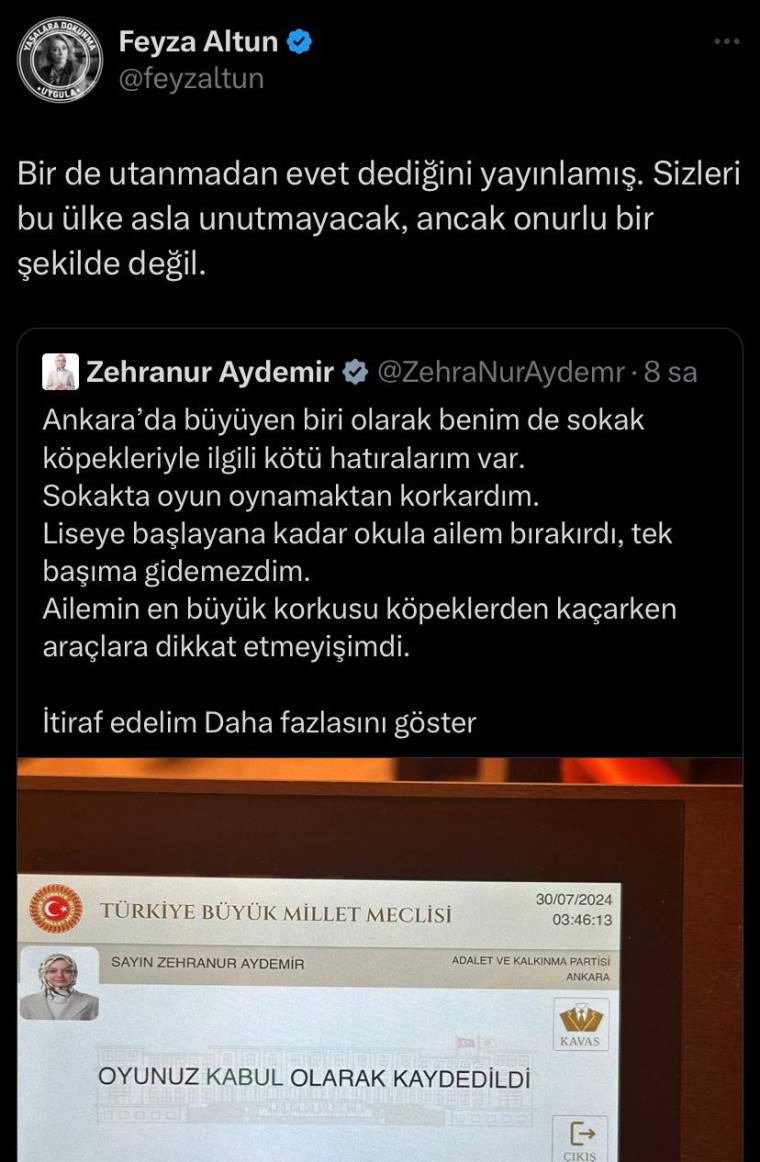 Tepkilerin yanı sıra katliama 'Evet' diyen vekiller de sosyal medyadan verdikleri oyu paylaşıp mesajlar paylaştı.