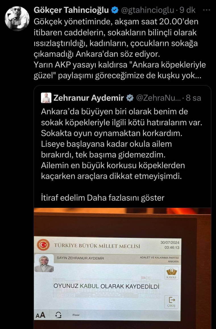 X hesabından 'Evet' oyunu paylaşan Aydemir, şu ifadelere yer verdi: